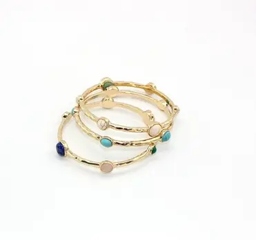 Tribeca Handmade Bangle Bracelets Set of 3 – Hammered Design & Natural Stones – Perfect Fashion Accessory or Gift