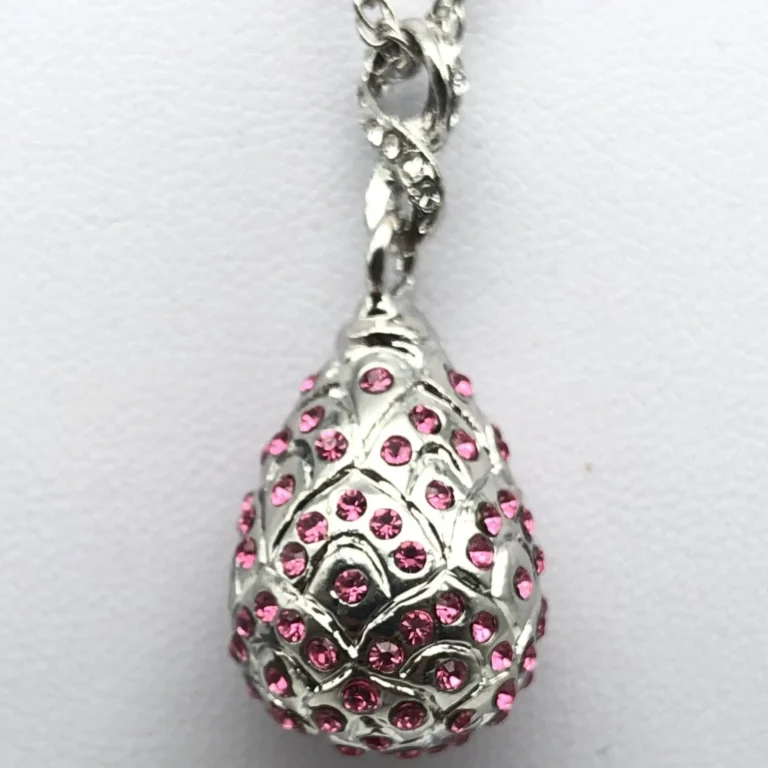 Elegant Silver Egg Pendant Necklace – Hand-Painted Enamel with Austrian Crystals | Luxurious Jewelry Gift