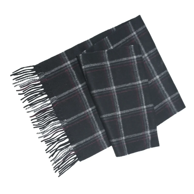 Elegant Black Silver Red Cashmere Woven Check Scarf – Luxury Hommard Accessories