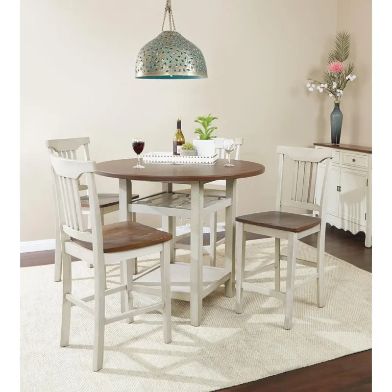 Berkley 5-Piece Counter Height Dining Set – Antique White & Wood Stain Finish | Modern Farmhouse Table & Chairs