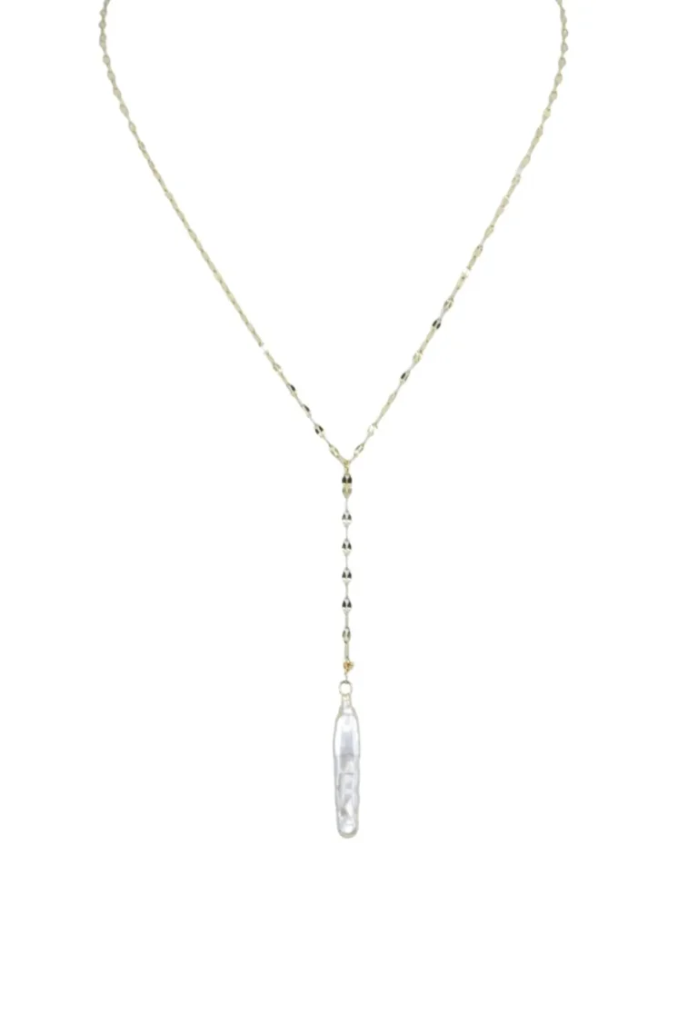 Elegant Gold Chain Pearl Drop Tassel Necklace – 16″ with 3.25″ Drop | A Blonde and Her Bag