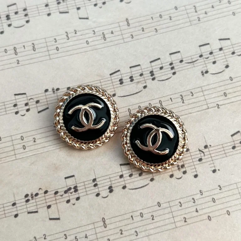 Elegant Designer Buttons Black Enamel Set – Goldtone Metal, 20mm – Pack of 2 | Ideal for Fashion Projects