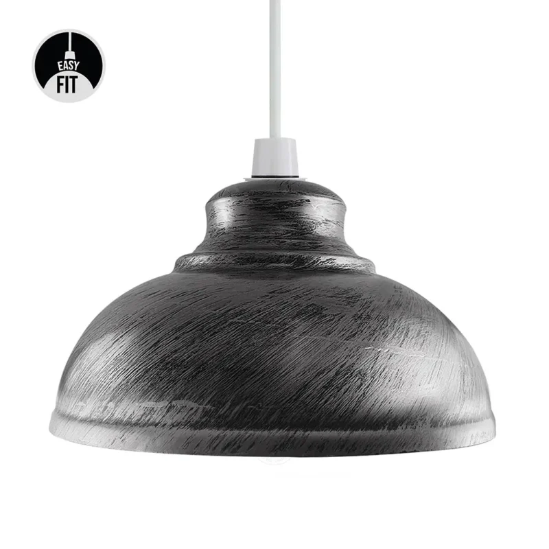 Brushed Silver Retro Ceiling Pendant Light Lamp Shade | Easy Fit for Cafe, Kitchen, and Dining Areas