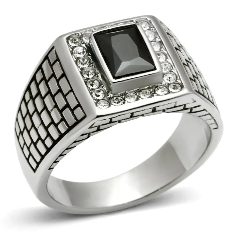 LO3000 Ruthenium Brass Ring with Synthetic Glass in Jet – Elegant & Durable – Buy Online Now