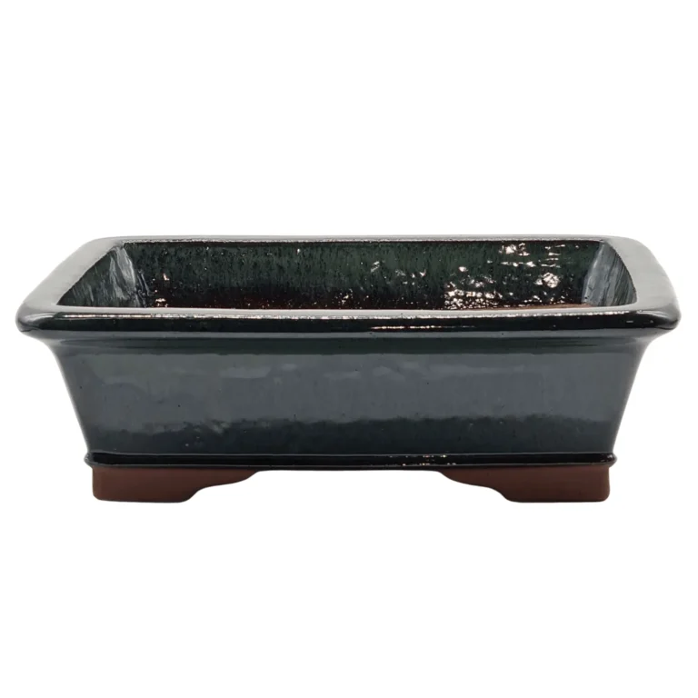 USDC21.11 – USDC31.25Premium 37cm Glazed Bonsai Pot – Rectangular Green Planter for Bonsai Enthusiasts | 37cm x 30cm x 12cm
