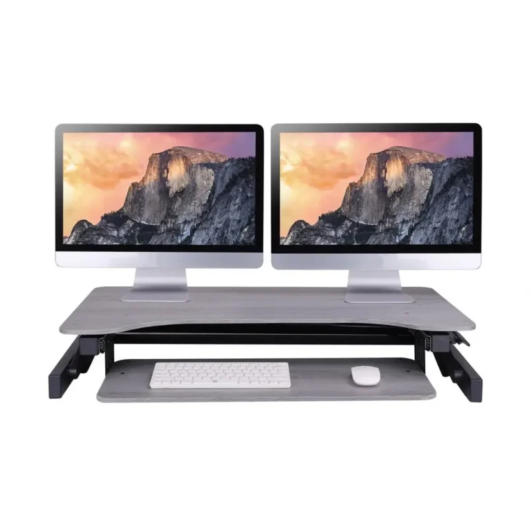 Rocelco 37.5″ Deluxe Height Adjustable Standing Desk Converter Bundle with Dual Monitor Mount and Anti-Fatigue Mat – Ergonomic Sit-Stand Computer Workstation with Keyboard Tray – Gray