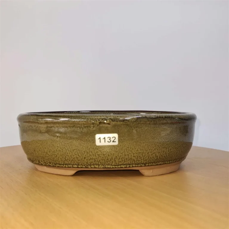 Elegant 21cm Green Glazed Oval Bonsai Pot – Ideal for Indoor & Outdoor Bonsai Displays