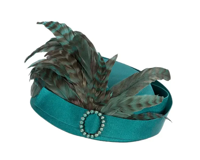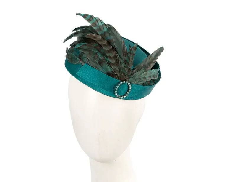 Bespoke Teal Green Fascinator Hat by Cupids Millinery – Luxurious Pillbox with Feathers, Made in Australia