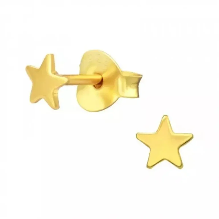 Kids Silver Gold Star Stud Earrings – Sterling Silver, 14K Gold Plated | Elegant Child Accessories