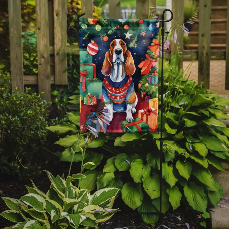 Festive Basset Hound Christmas Garden Flag – Vibrant & Durable Outdoor Decoration