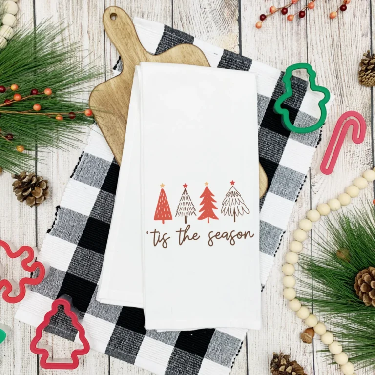 Christmas Farmhouse ‘Tis Season Tea Towel – Decorative Holiday Kitchen Hand Towel
