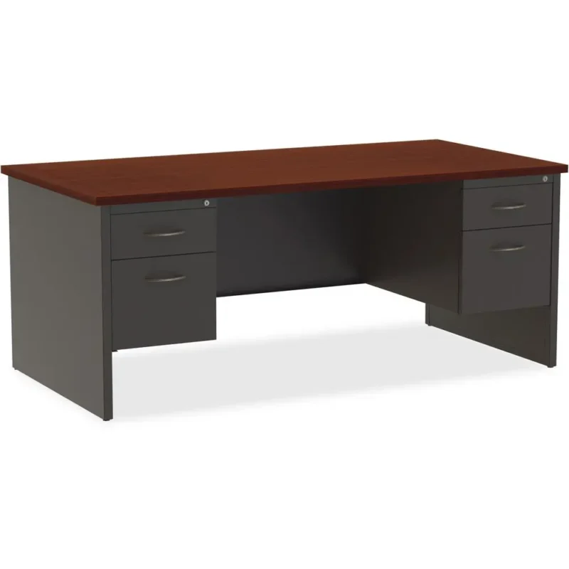 Lorell Fortress Modular Double-Pedestal Desk 72″ x 36″, Steel, Mahogany Laminate