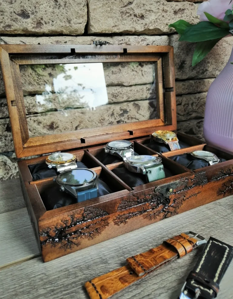 Luxury Wood Watch Box – 6 Divider Display Case | Perfect Mens Gift