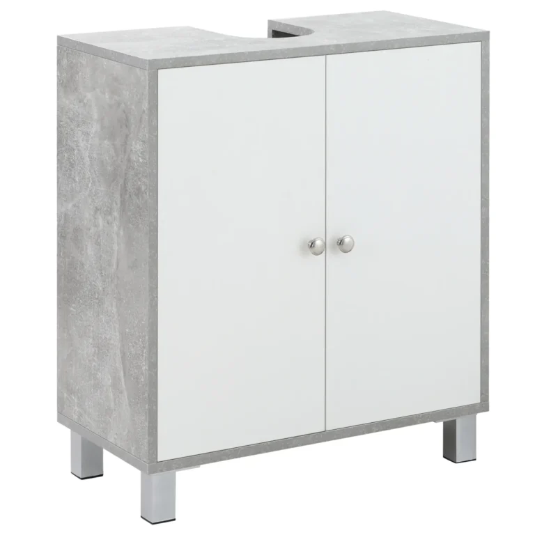 kleankin Under Sink Bathroom Vanity Unit – Modern Pedestal Design with Adjustable Shelves, White and Grey