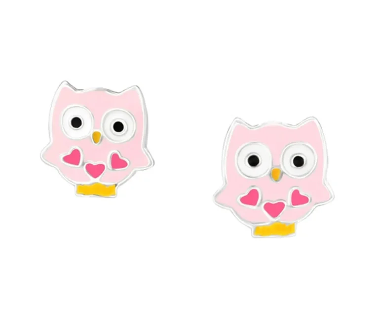 Elegant Children’s Sterling Silver Owl Stud Earrings – Perfect Gift on Card