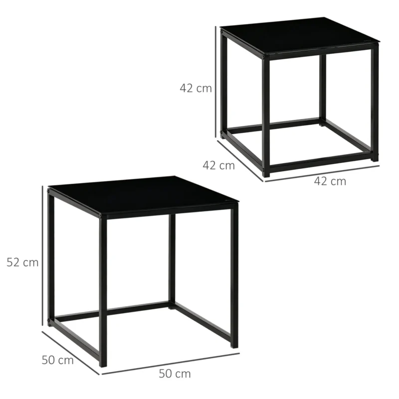 HOMCOM Nesting Side Tables Set of 2 – Modern Tempered Glass Tops for Living Room, Bedroom, Office – Black