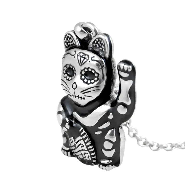 Controse Cat Necklace Day of the Dead Maneki-Neko – Stainless Steel Pendant | Lucky Talisman Jewelry
