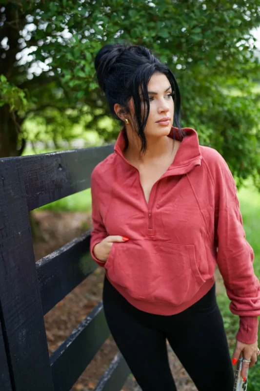 Vivienne Zip Up Stand Collar Ribbed Thumbhole Sleeve Sweatshirt – Stylish Comfort for All Occasions