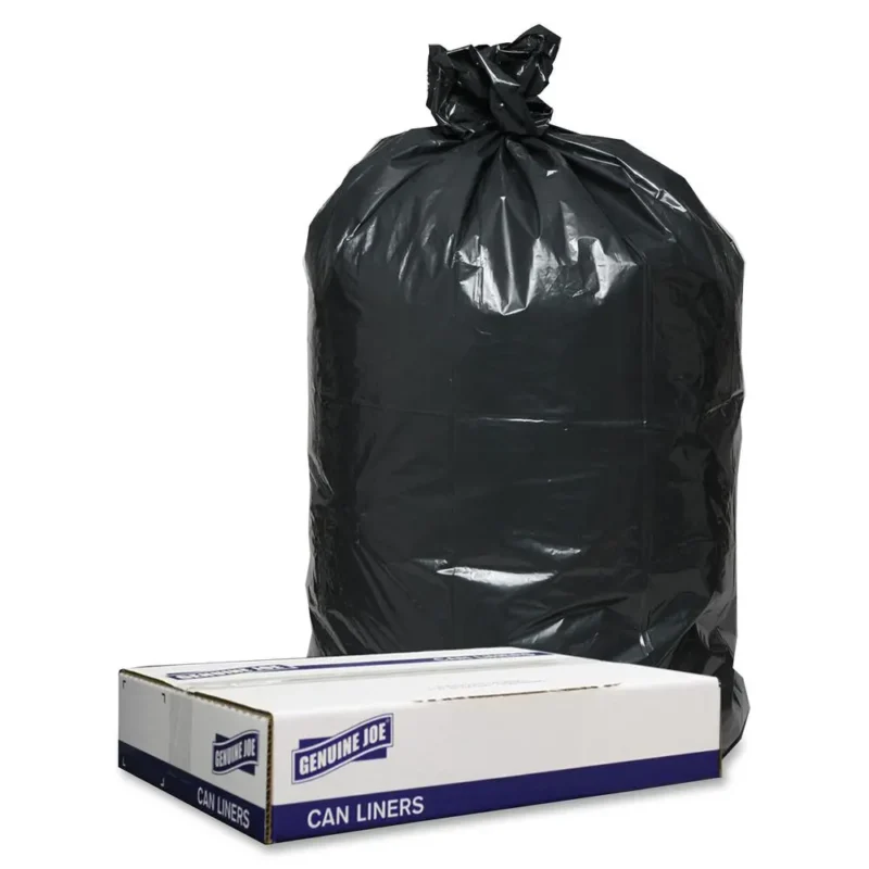 Genuine Joe Low Density Black Can Liners – 60 Gallon Capacity, Heavy-Duty, Recycled Material – 100/Carton