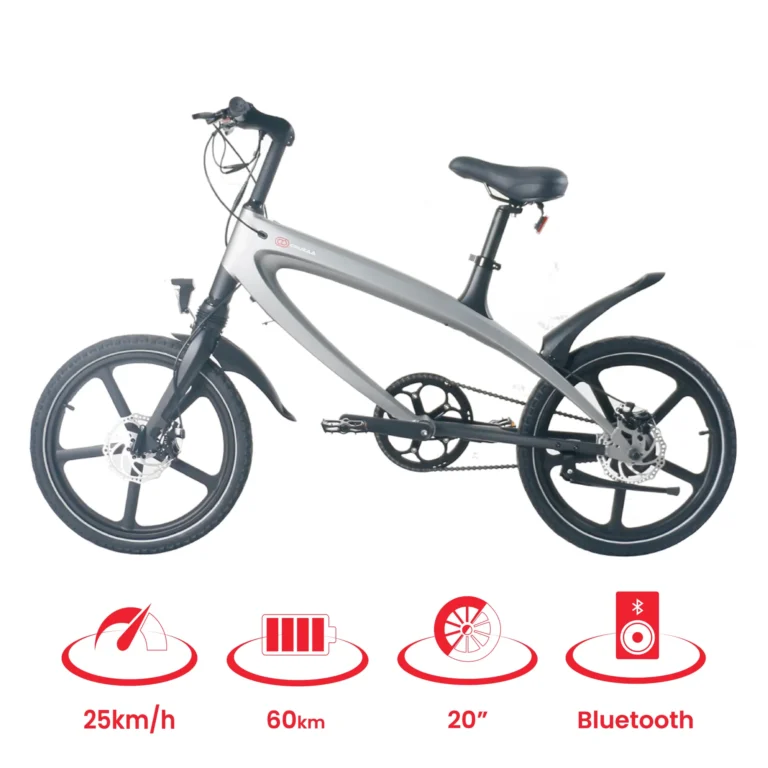 Official Gun Metal Grey E-Bike Built-in Speakers, Bluetooth, 60km Range, 25 km/h Speed