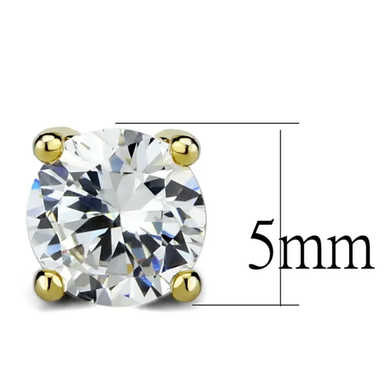 Elegant Gold Brass Earrings with Clear AAA Grade CZ Stones – 5mm