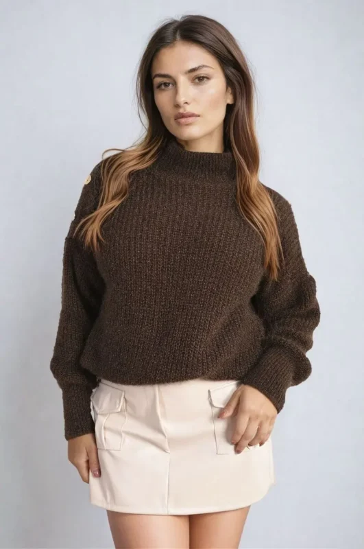 Cozy Buttons Long Sleeves Chunky Knit Top – Stylish & Warm for Everyday Comfort
