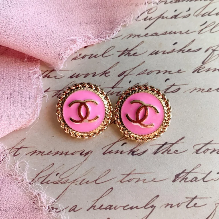 Elegant Pink Enamel Designer Buttons – 2-Piece Set, 20mm Goldtone Metal Alloy, Decorative Sewing Accessories