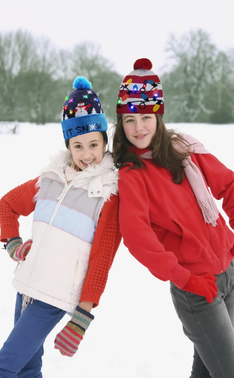 Pom Pom Party Holiday Hats with LED Lights | Festive Styles & Prints | Cozy Acrylic Cotton Blend