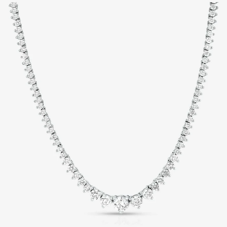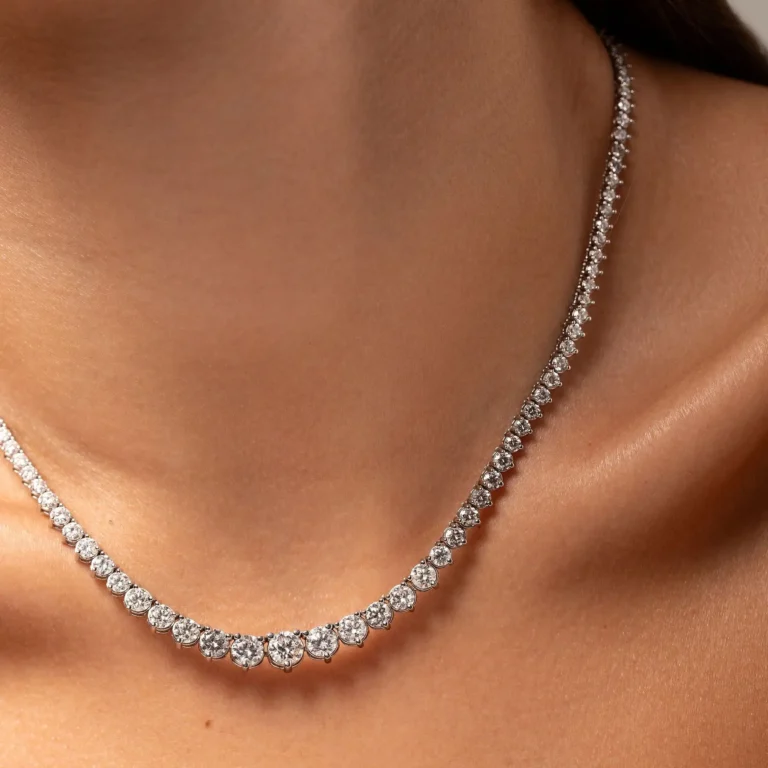 USDC33.79 – USDC40.29Stunning 15 CTW Lab Created Moissanite Tennis Necklace – 14K Gold over Sterling Silver, 17 Inch