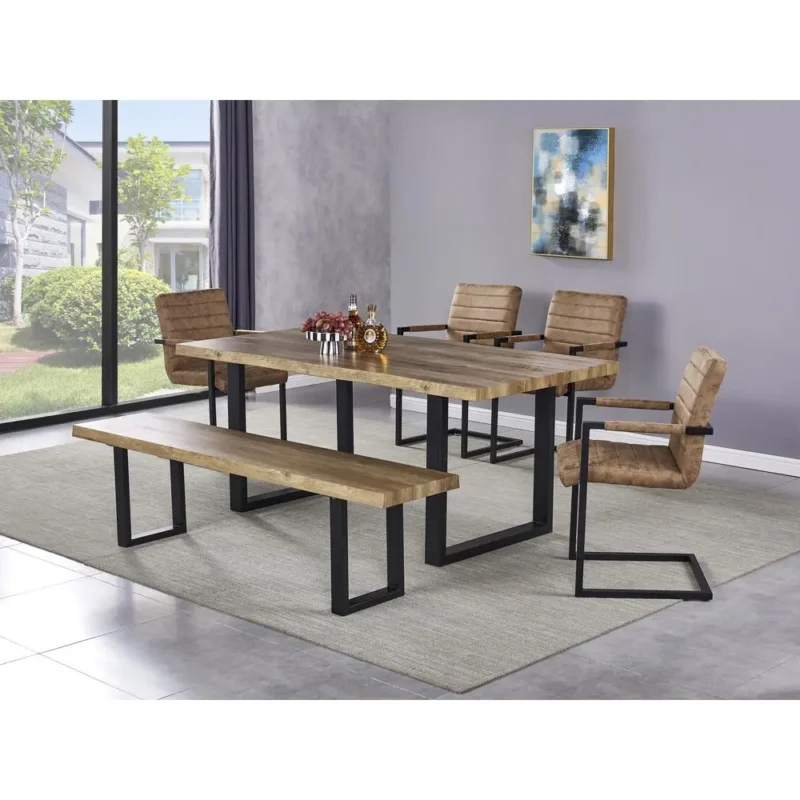 Bazely Industrial Chic Oak Wood Dining Bench with Black Metal Base – Rustic & Durable Seating