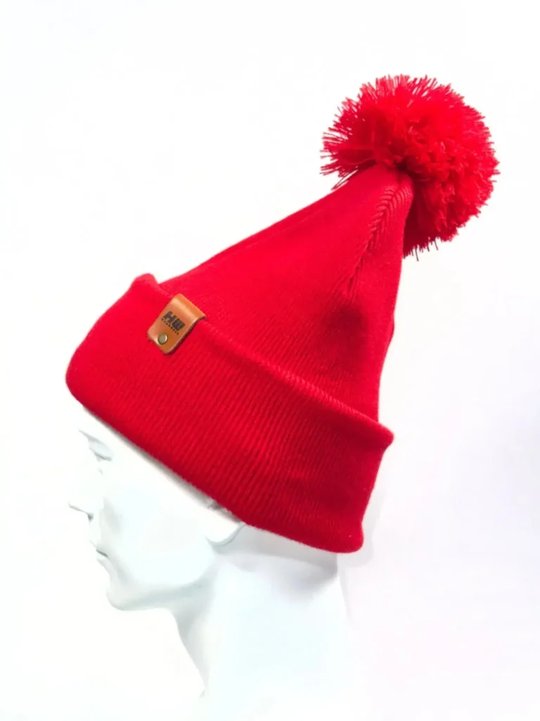 HAAKWEAR Red Pom Pom Beanie – Made in USA | Cozy & Stylish Winter Hat
