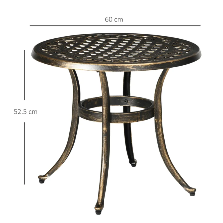 Outsunny 60cm Industrial Side Table – Cast Aluminum, Round Hollow Top, Bronze – Perfect for Patio, Garden, Balcony