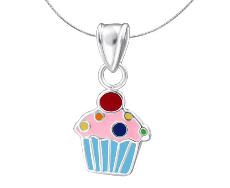 Children’s Sterling Silver Cupcake Pendant Necklace – Rainbow Colors & Gift Box Included