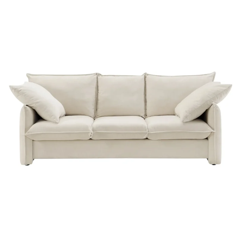 Elegant Mid-century Beige 3-Seater Sofa | Cozy Couch for Living Room, Apartment, Lounge, or Bedroom