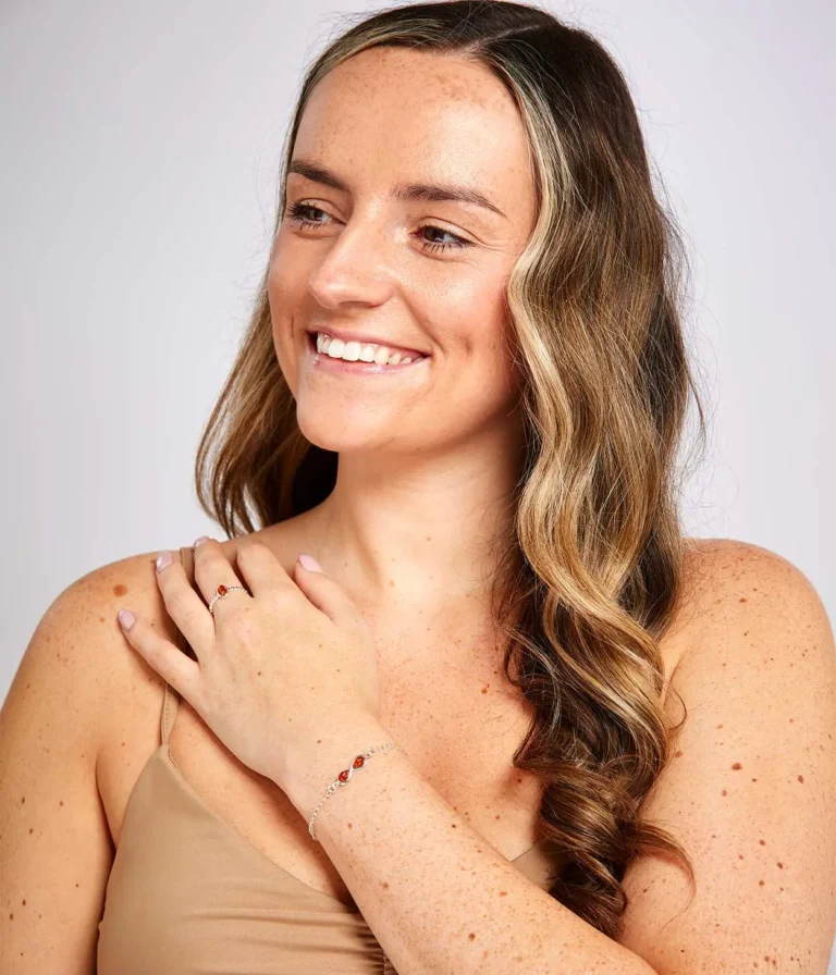 Silver Link Chain Infinity Bracelet – Elegant Sterling Silver & Baltic Amber