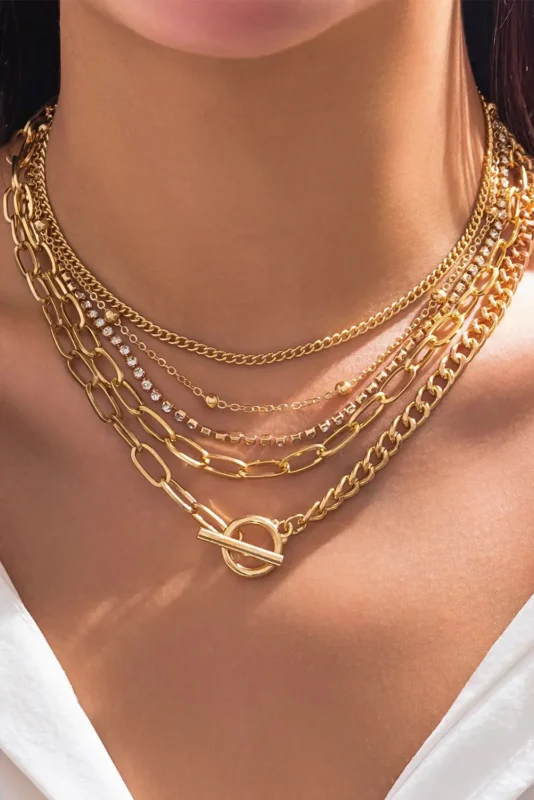 5pcs Layered Chain Collarbone Necklaces Set – Elegant Multi-Layer Jewelry with Dazzling Rhinestones & Adjustable Fit