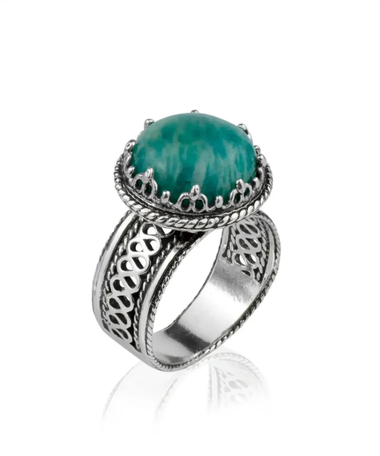 Handcrafted Filigree Art Sterling Silver with Amazonite Gemstone Woman’s Cocktail Ring – Elegant and Unique
