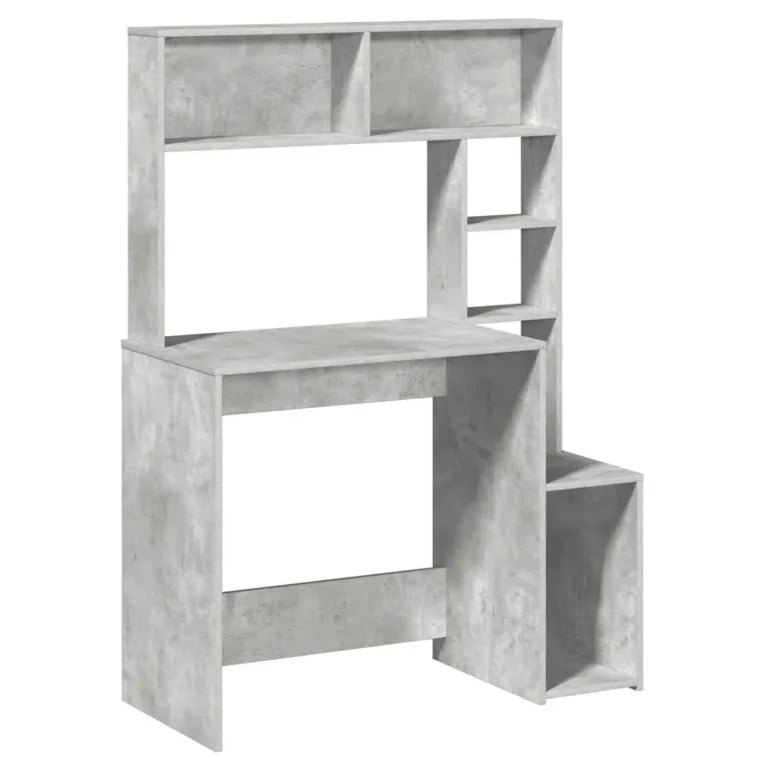 vidaXL Engineered Wood Desk with Shelves in Concrete Grey – 100x45x140 cm – Ideal for Home Office, Study Room, Living Room