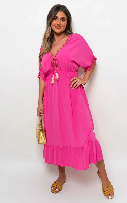 Elegant V-Neck Rope Tassel Detail Maxi Dress – Perfect for Any Occasion