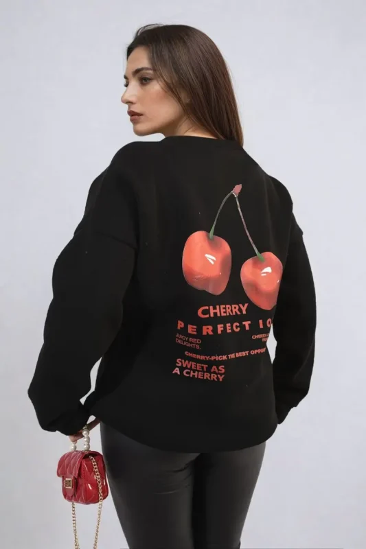 Cherry Printed Oversized Knitted Jumper – Front & Back Design – Cozy & Stylish
