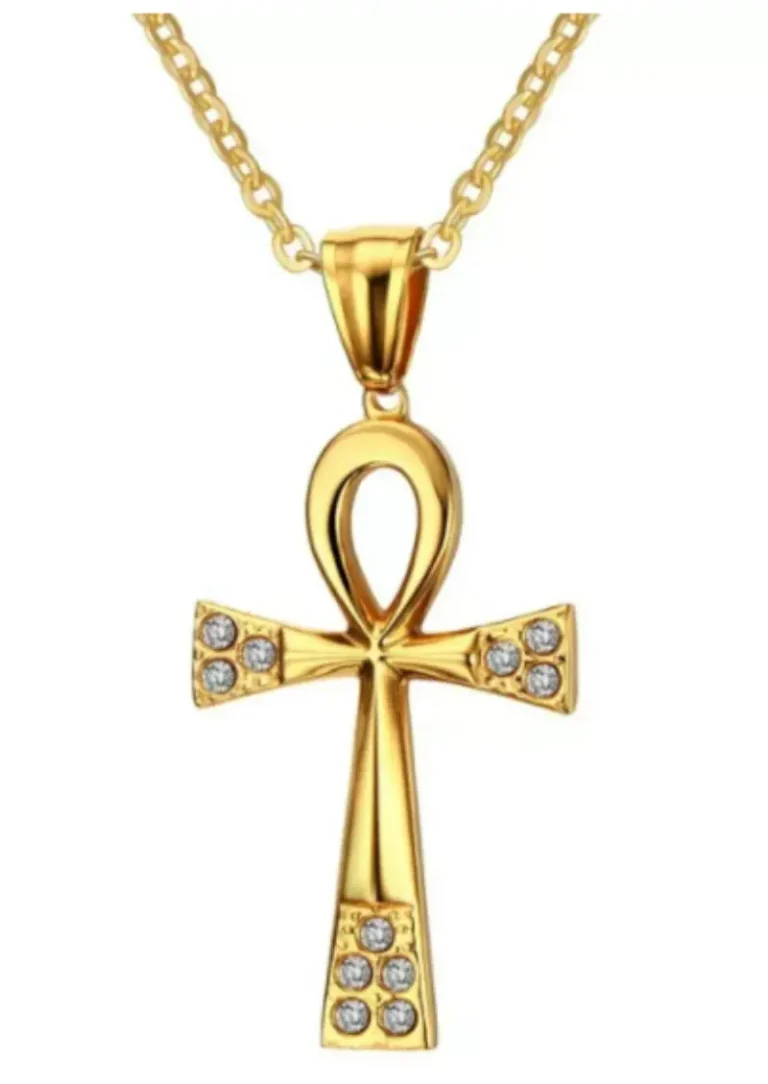 Gold Men’s Egypt Cross Necklace – Elegant Stainless Steel Jewelry for Sophisticated Style