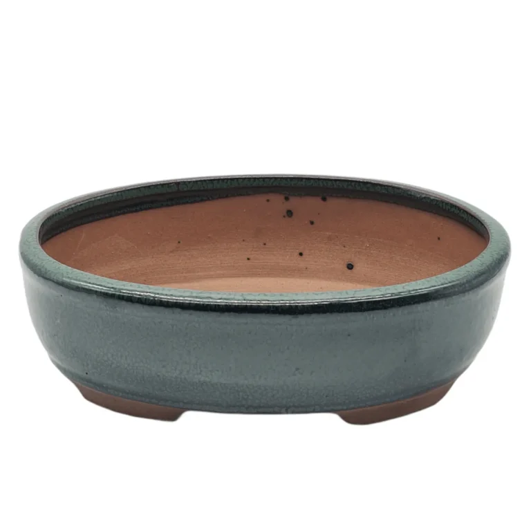 18cm Oval Glazed Bonsai Pot – Green | Ideal for Bonsai Enthusiasts | 18cm x 15cm x 5cm