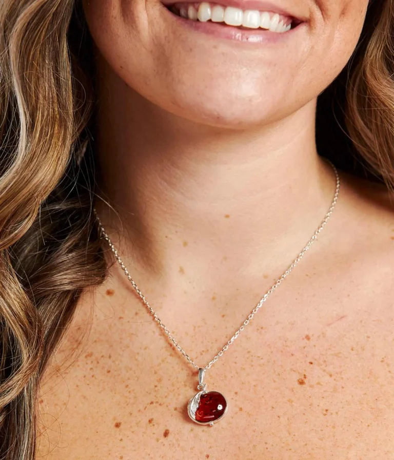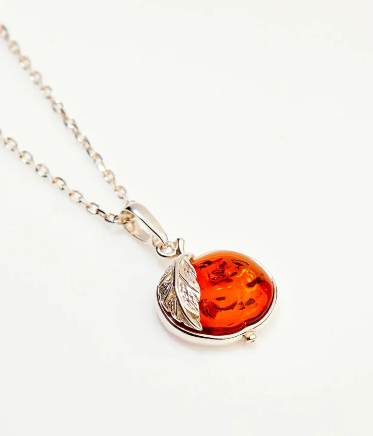 Handmade Honey Apple Amber Pendant Necklace with Sterling Silver Elegant Charm Jewelry