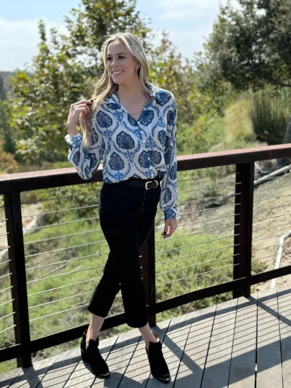 Mila Pattern Button Top – Boho Chic, Tribal Print, Versatile Button-Up Blouse