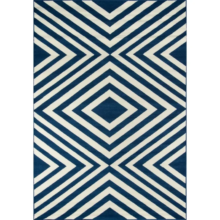 Contemporary Rectangle Area Rug, Navy – 3’11” X 5’7″ | Durable Indoor/Outdoor Rug