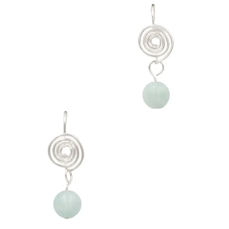 Handmade Amazonite Sterling Silver Coil Earrings | Hypoallergenic, Eco-Friendly Natural Stone Jewelry
