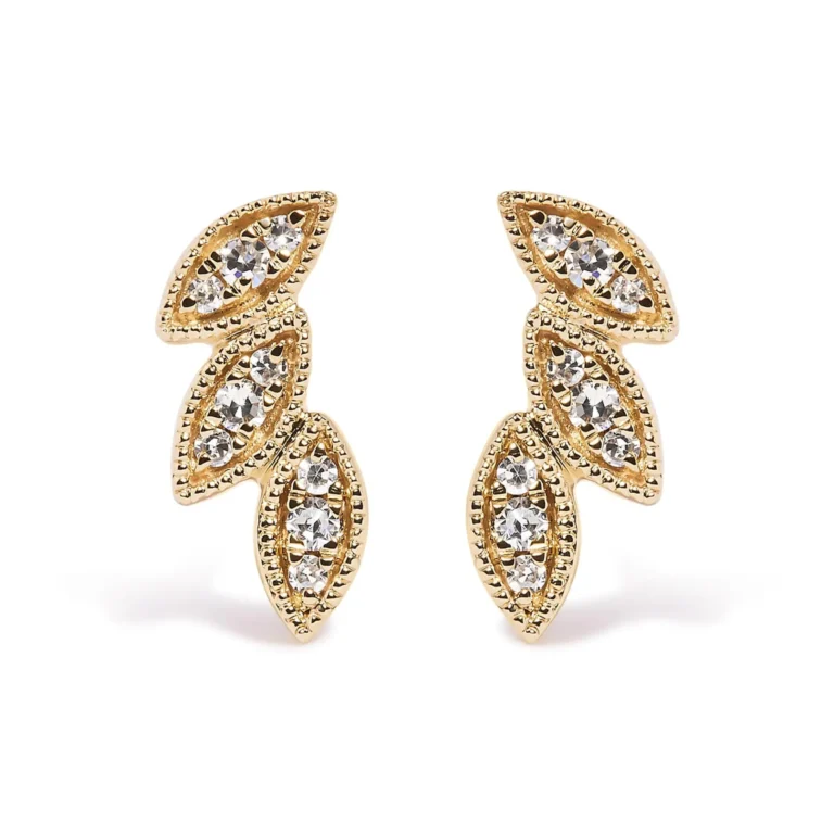 10K Yellow Gold Diamond Triple Leaf Stud Earrings 1/10 Cttw, H-I Color, I1-I2 Clarity