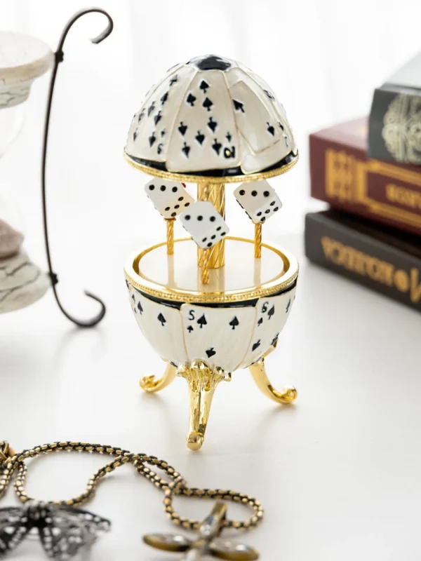 Exquisite Dice & Cards Las Vegas Carousel Trinket Box – Handpainted with Austrian Crystals, 24K Gold Plated, Elegant Gift Box