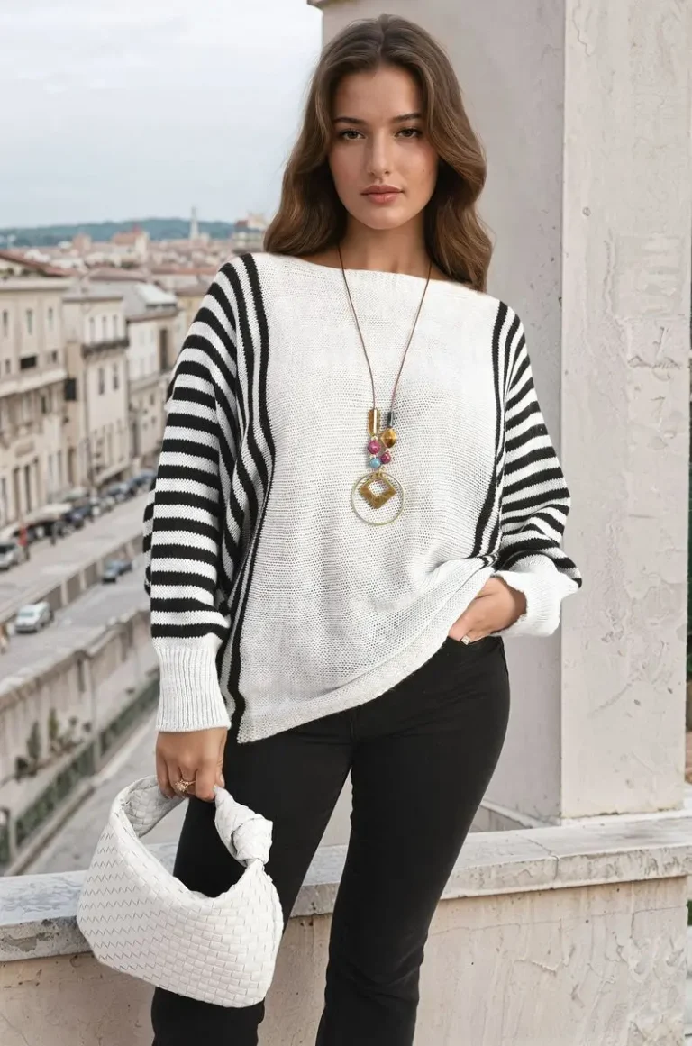 Cozy Striped Batwing Long Sleeve Knitted Jumper Stylish & Comfortable Sweater for Everyday Wear