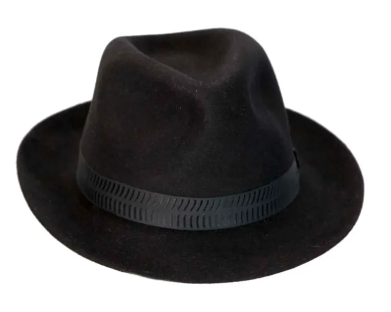 Elegant Black Rabbit Fur Men’s Wide Brim Fedora Hat – Premium Quality, Made in Europe